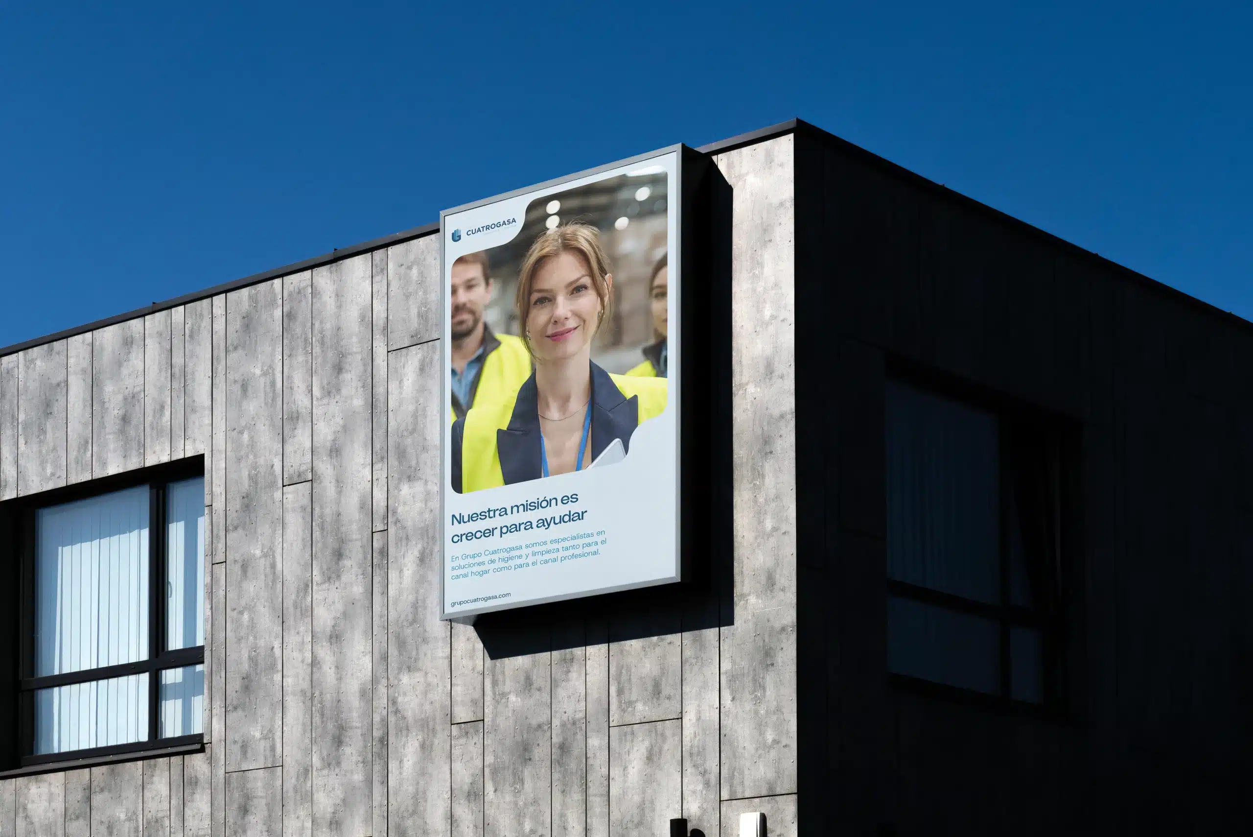 El nuevo diseño desarrollado se aplica de manera versátil a múltiples soportes y canales de comunicación de la marca. Pare de la solución de este proyecto se centró en la creación de un universo gráfico y un sistema visual definido que reflejara la personalidad del Grupo Cuatrogasa.